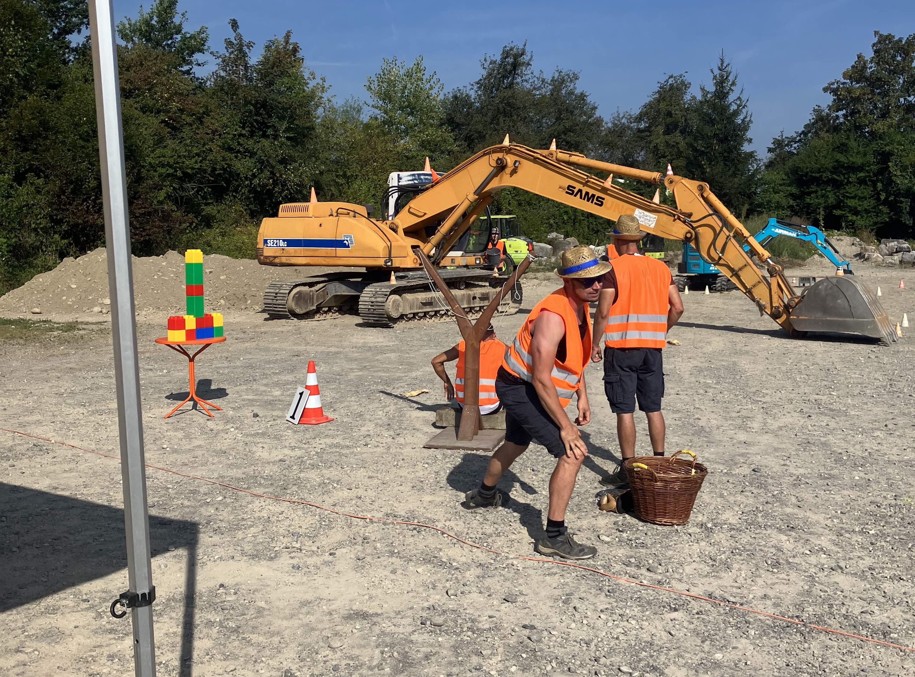 Hier ist das Team gefragt, welche Buchstabensteine kommen in welcher Reihenfolge? Hat die Person auf dem Bagger genügend Fingerspitzengefühl, um die Steine richtig zu platzieren? Spannung und Spass sind garantiert.