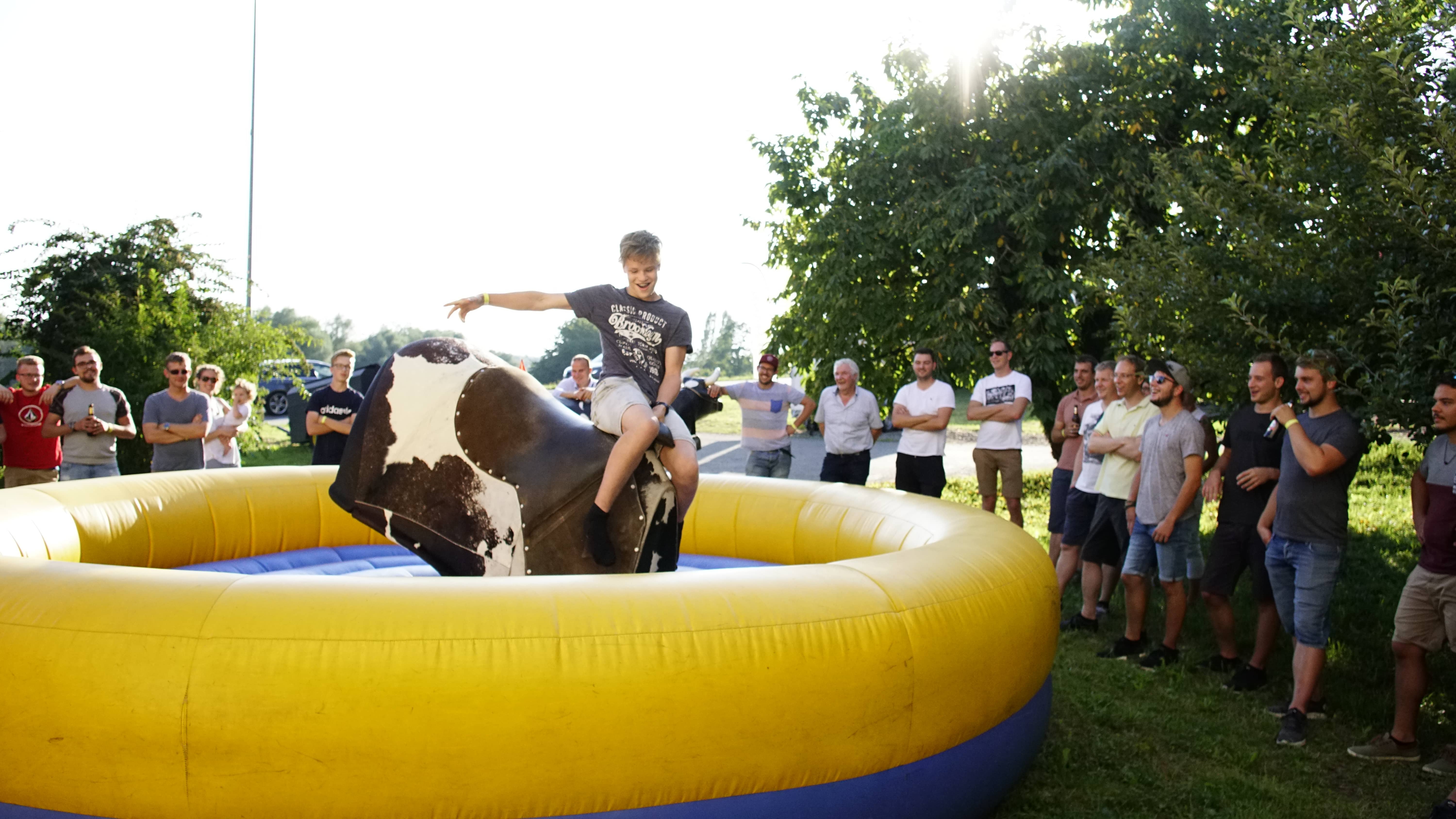Rodeo reiten wie im Film. Wer schafft es am längsten auf dem Rücken zu bleiben?